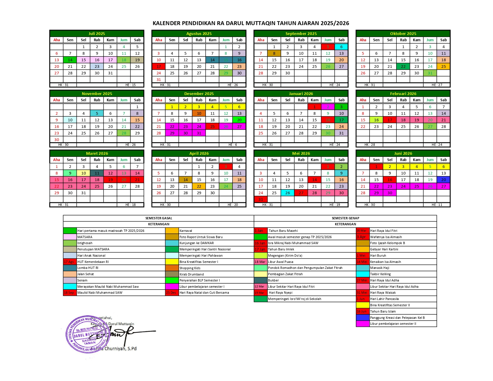 RA Darul Muttaqin juga menetapkan tim penanggung jawab untuk masing-masing program, menyusun kalender kegiatan tahunan, serta mengintegrasikan kegiatan sekolah dengan nilai-nilai akhlak mulia dan kemandirian.